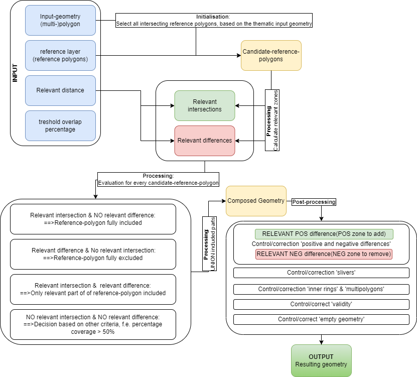 • Validation/correction of differences between the original input geometry and the composed intermediate resulting geometry after processing the algorithm