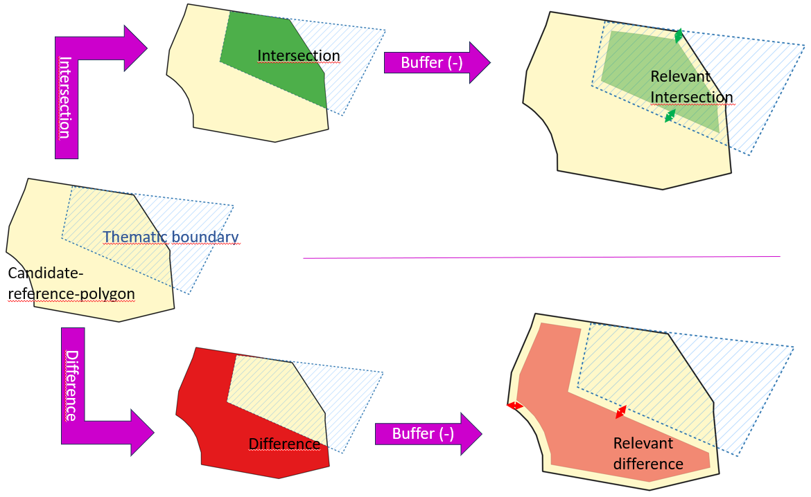 • Deciding which reference polygons are candidate-polygons to re-use its shape. The reference candidate polygons are selected based on spatial intersection with the thematic geometry.